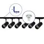 Beschrijving Complete Set 1-Fase Rail L 1 x 1 Meter Zwart | incl. 6x Spot + GU10 2700K 3W Dimbaar + Eindkap, Voedingsconnector en L -Verbindingsstuk