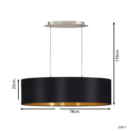 Beschrijving Eglo Pendelarmatuur Maserlo Staal Satijn Nikkel | Geschikt voor 2x E27