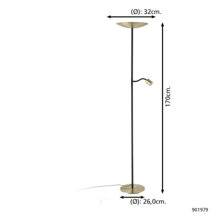 Beschrijving Eglo Vloerlamp Conivarino Staal Brushed Messing, Zwart 30.5W 3150lm - 827 Zeer Warm Wit | Dimbaar