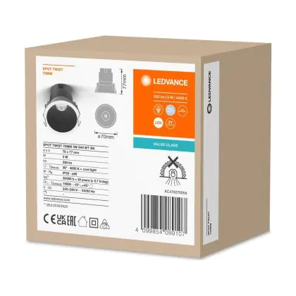 Beschrijving Ledvance LED Spot Twist Pro Aluminium Zwart Reflector 5W 350lm 30D - 840 Koel Wit | 70mm - Zaagmaat 65mm - IP20