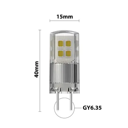 Deze GY6.35 LED lamp heeft een diameter van mm en is 40mm lang. Deze afmetingen zijn belangrijk om te weten, omdat GY6.35 LED steeklampjes doorgaans iets groter kunnen zijn dan conventionele GY6.35 halogeenspots. Door de afmetingen van deze GY6.35 LED lamp te vergelijken met je huidige lamp voorkom je dat je een nieuwe lamp koopt die niet in het betreffende armatuur past. Wel zo prettig is dat je bij de aankoop van dit product een Lampdirect All-in garantie krijgt van 2 jaar.
