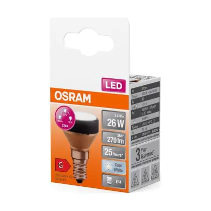 Beschrijving Osram LED Plat Lamp E14 Special Mat 3.5W 270lm - 840 Koel Wit | 3-Staps Dimbaar - Vervangt 25W