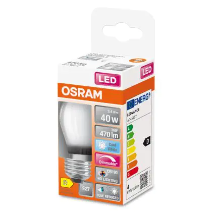 Beschrijving Osram LED Superstar E27 Kogel Filament Mat 3.4W 470lm - 940 Koel Wit | Beste Kleurweergave - Dimbaar - Vervangt 40W