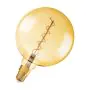 Deze bolvormige en stijlvolle LED gloeilamp uit de welbekende Osram Vintage 1906 serie voorziet elke ruimte van sfeer en gezelligheid. Het goud gekleurde glas en de sierlijke kooldraad met daarin hoogwaardige kwaliteit LED’s zorgen voor een schitterend contrast qua licht en is het aanzien meer dan waard! Laat iedereen versteld staan van de warme tint die deze Osram vintage LED lamp creëert.
