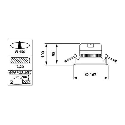 Het installeren van deze Philips downlight is vrij eenvoudig en kan rechtstreeks op het stroomnetwerk (220-240V). Dat komt onder andere omdat de driver al is ingebouwd en de 6-polige doorvoerconnector het aansluiten in elk systeemplafond gemakkelijk maakt. Let voor het installeren wel of de inbouwdiepte (200mm) en met name de zaagmaat (150mm) overeenkomen met die van dit product. Twee sterke rvs-klemmen zorgen ervoor dat dit armatuur stevig op zijn plek blijft zitten. Deze Philips CoreLine serie bevat tevens InterAct-ready armaturen met ingebouwde draadloze communicatie voor gebruik met InterAct-gateways, -