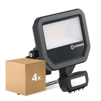 Voordeelpak 4x Ledvance LED Breedstraler Aluminium Zwart 17W 2400lm 100D - 840 Koel Wit | IP65 - Bewegings- en Lichtsensor - Symmetrisch